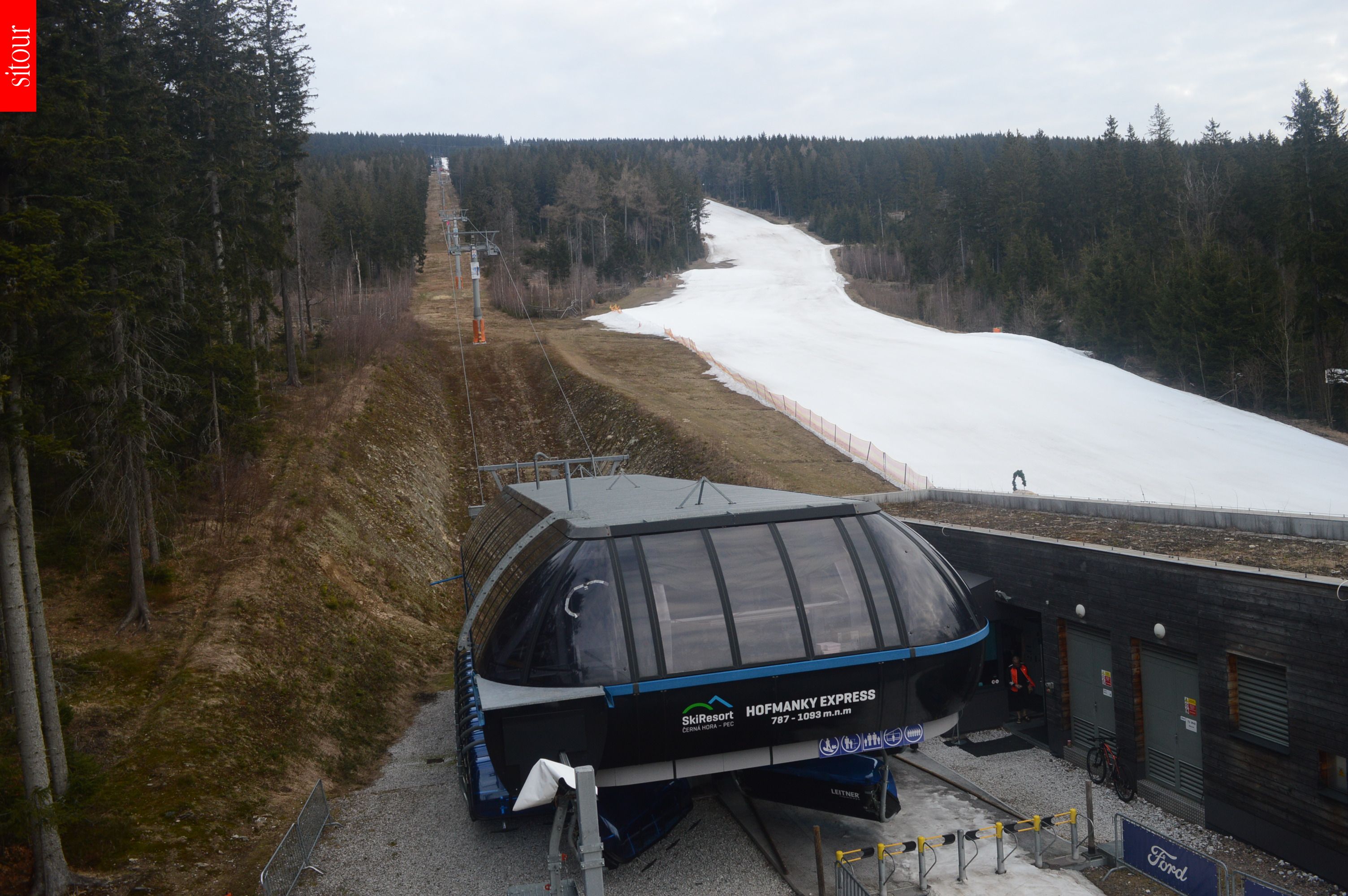 Kabinková lanovka na Černou horu mimo provoz.